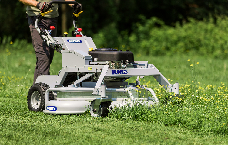 Profesjonalna kosiarka marki Grin – przystosowana do intensywnej pracy na dużych powierzchniach trawnika, idealna do całorocznego użytku i do pracy w trudnych warunkach.